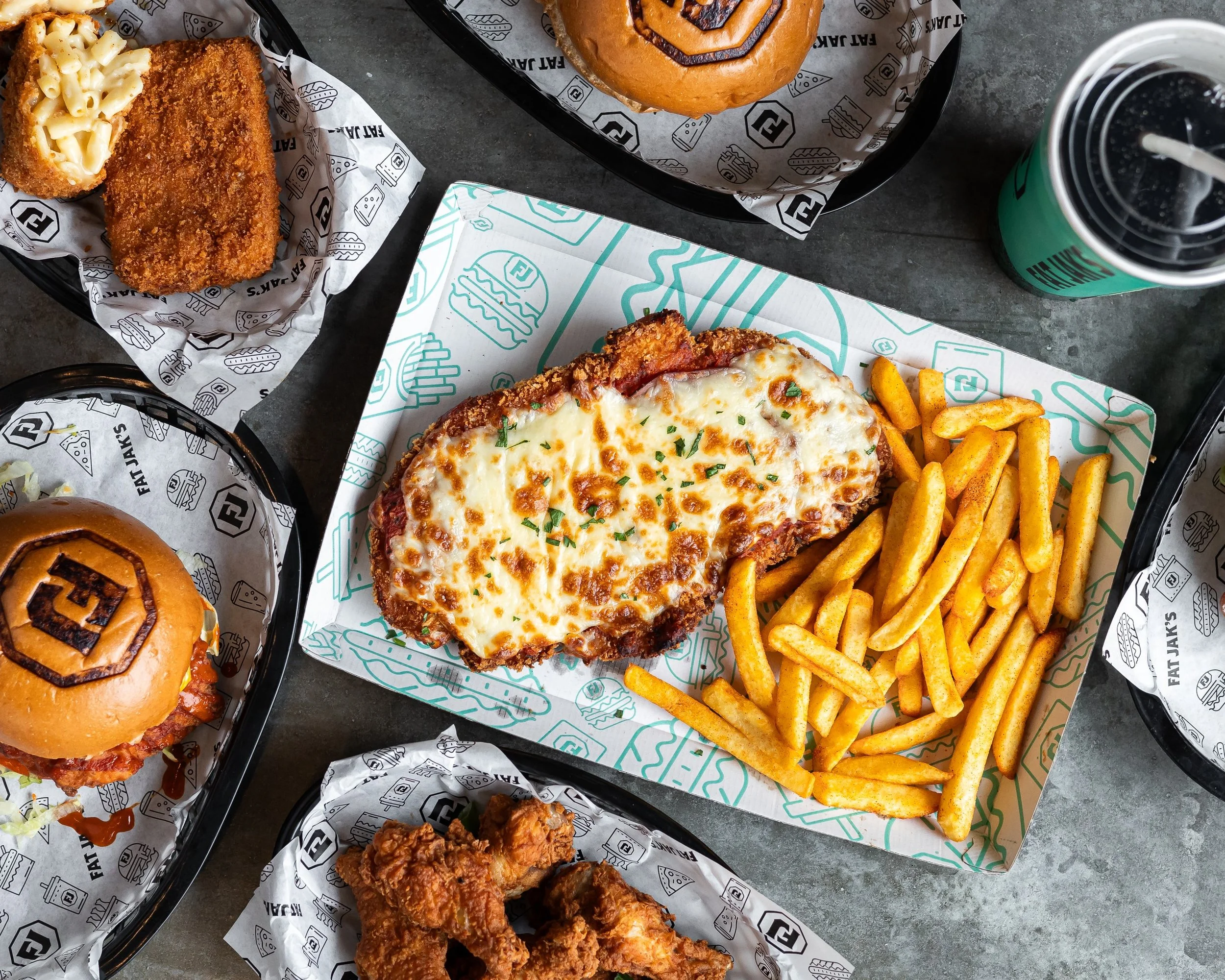 Fat Jak’s serves the best parmas in Sydney. Crispy chicken schnitzels layered with melted cheese, fresh vegetables, and our signature sauces, paired with golden fries for the ultimate meal experience.